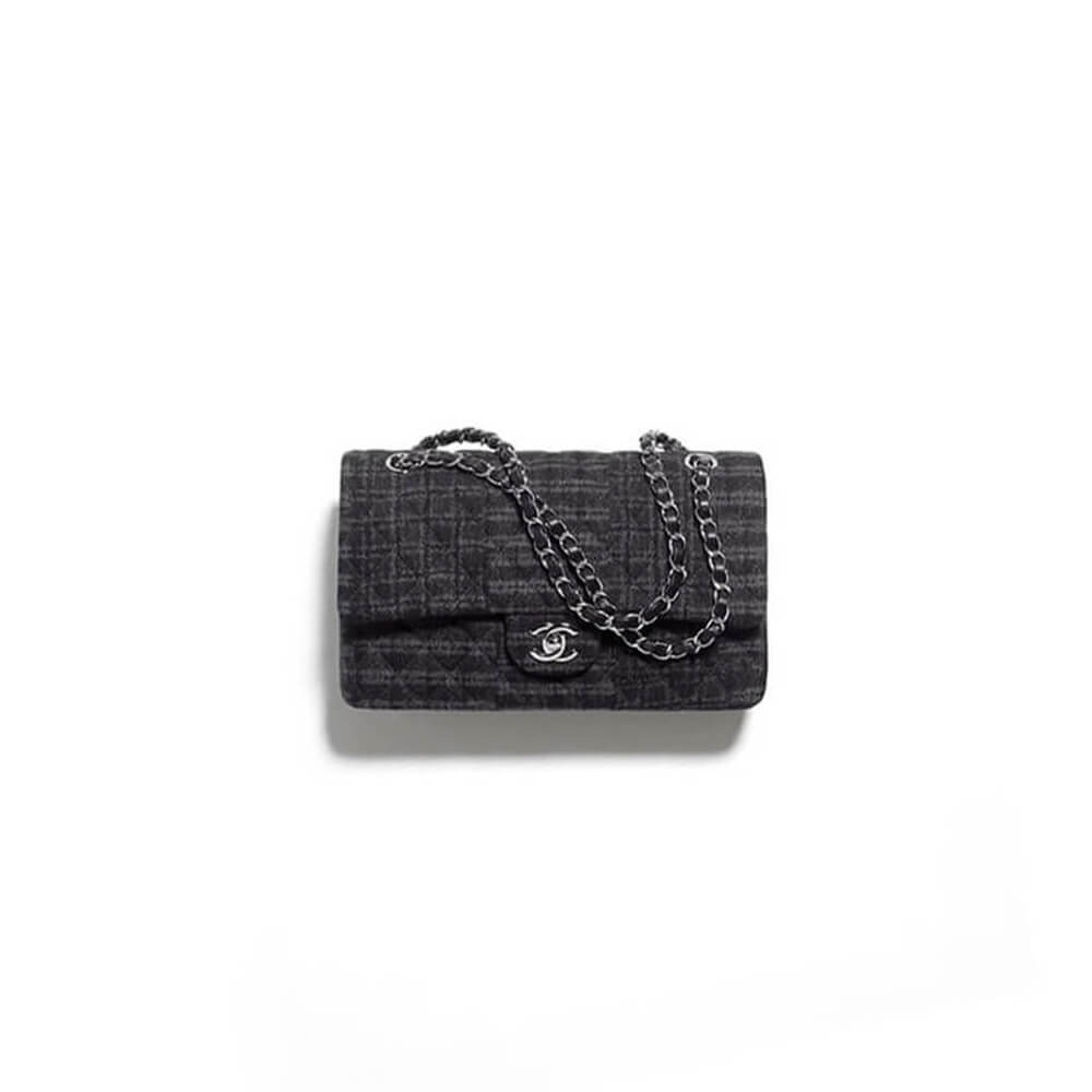 Printed Denim & Ruthenium-Finish Metal