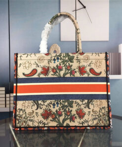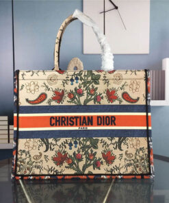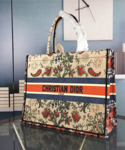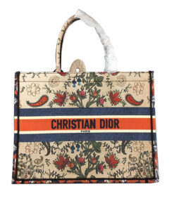The Dior Book Tote light bag is an original style designed by creative director Maria Grazia Chiuri and has now become a model of Dior aesthetics. This style can hold all the daily necessities and is embroidered with multicolor Dior Flowers motifs throughout. The front is decorated with the “Christian Dior” logo, and the two sides are decorated with patterns to add a contrasting modern feel. This lightweight bag is a model of Dior’s exquisite craftsmanship.