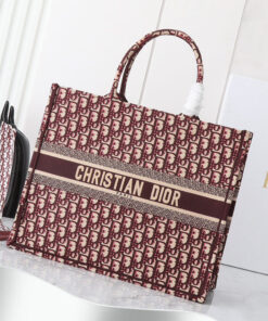 Burgundy and beige Dior Oblique Embroidery (42 x 35 x 18.5 cm)