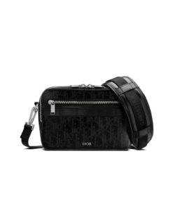 Removable and adjustable ‘Christian Dior’ nylon jacquard and calfskin shoulder strap