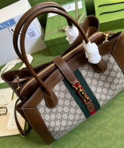 Beige and ebony GG Supreme canvas, a material with low environmental impact, with brown leather trim
