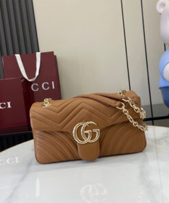 Brown matelassé chevron lambskin leather