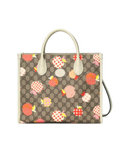 Beige and ebony GG Supreme canvas with apple print, a material with low environmental impact