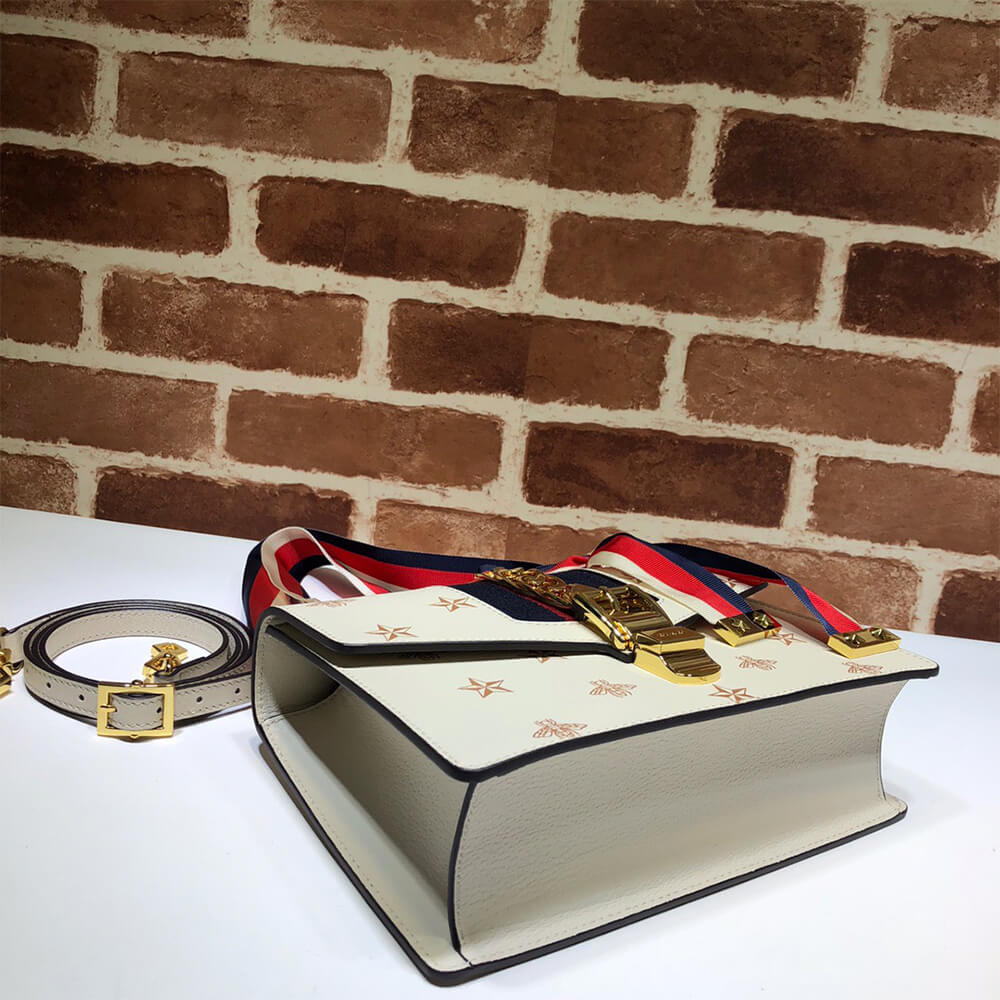 White metal-free tanned leather with gold bees and stars print