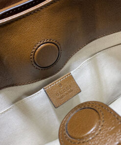 Double leather straps with 9.5cm drop can be tucked and stored inside the bag
