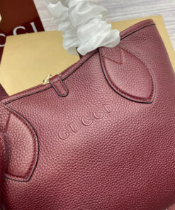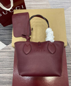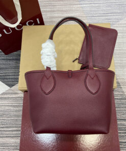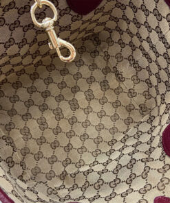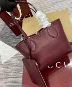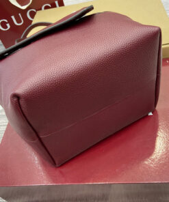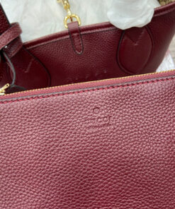 Gucci Rosso Ancora red grainy leather on one side, beige and dark brown GG canvas on the other