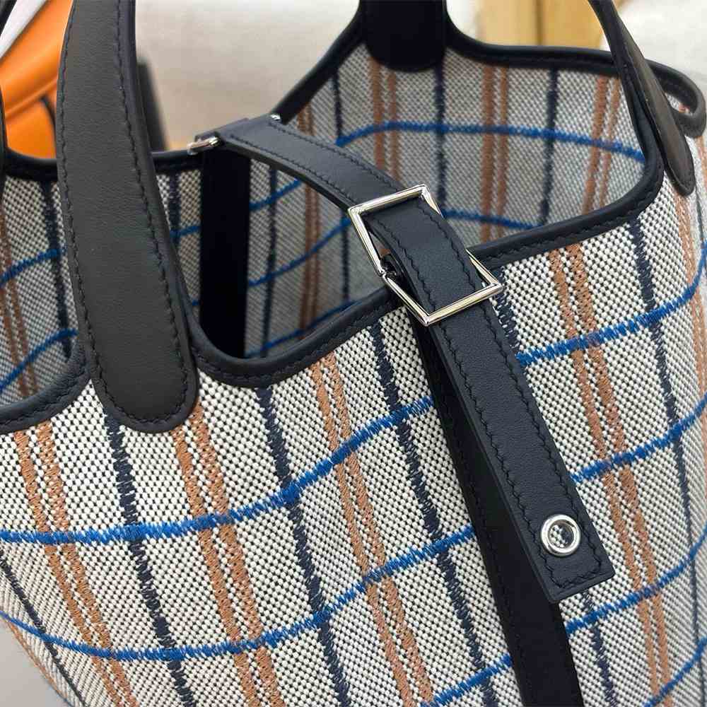 Bag in H canvas and Swift calfskin with “Couverture Carre” embroidery