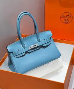 Blue with gold hardware