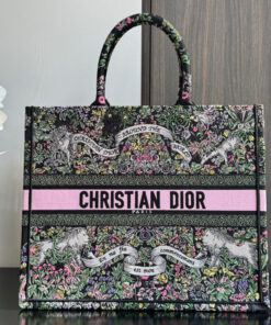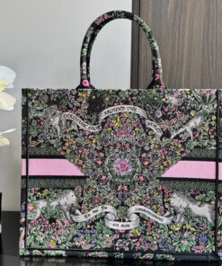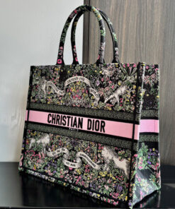 Black Embroidery with Multicolor Dior Around the World Motif (42 x 35 x 18.5 cm)