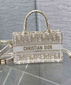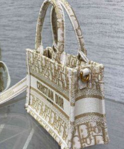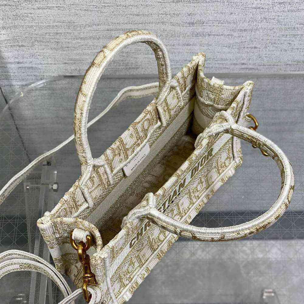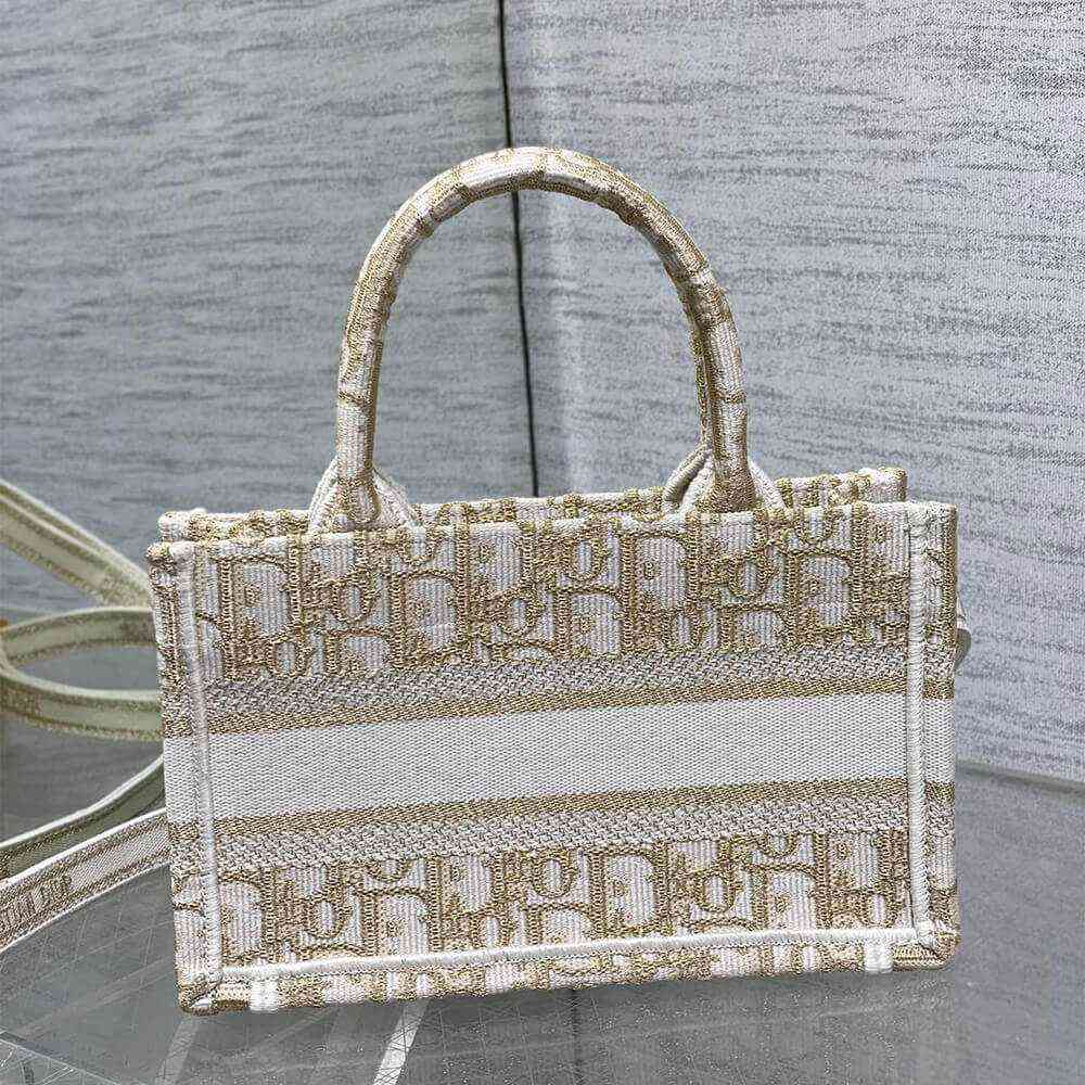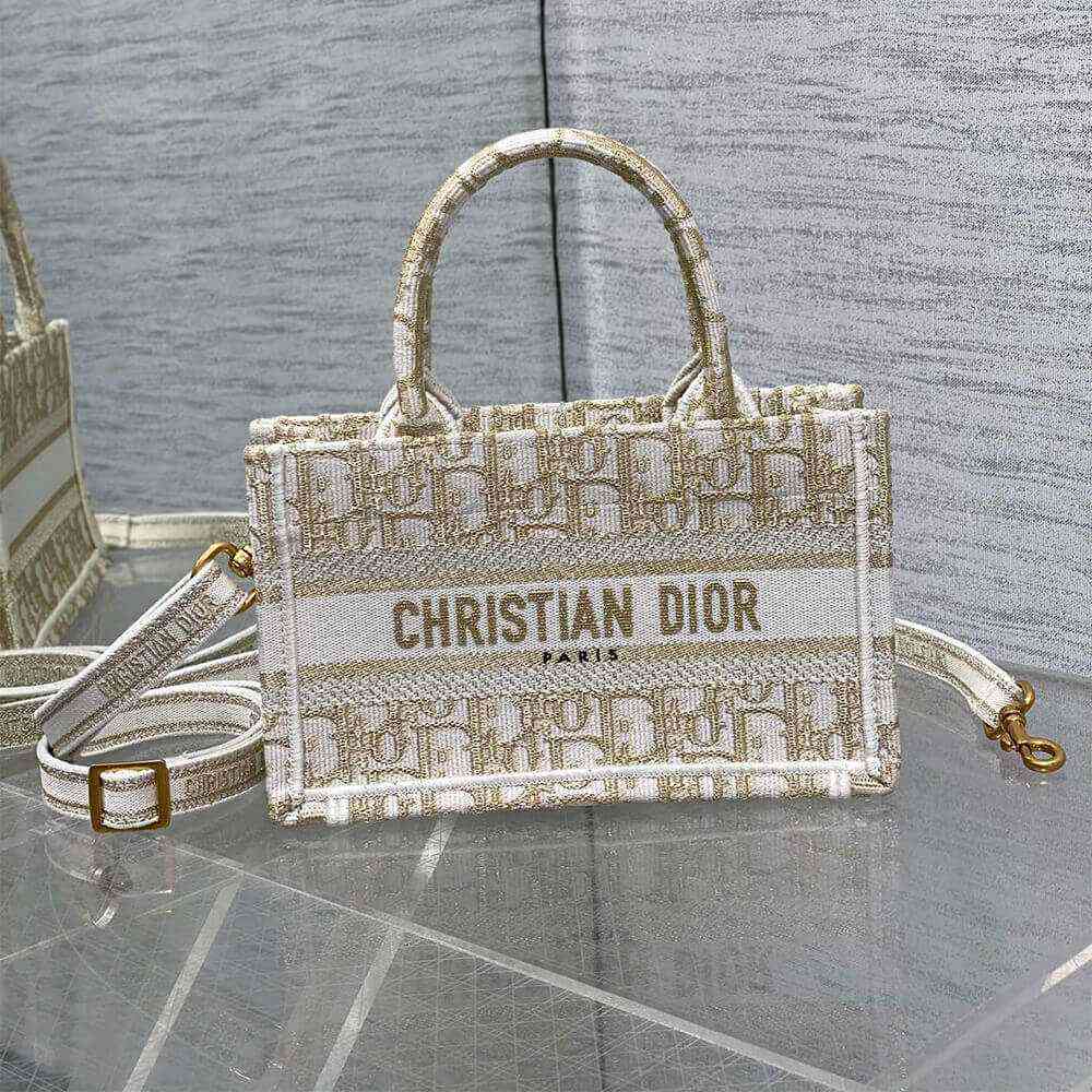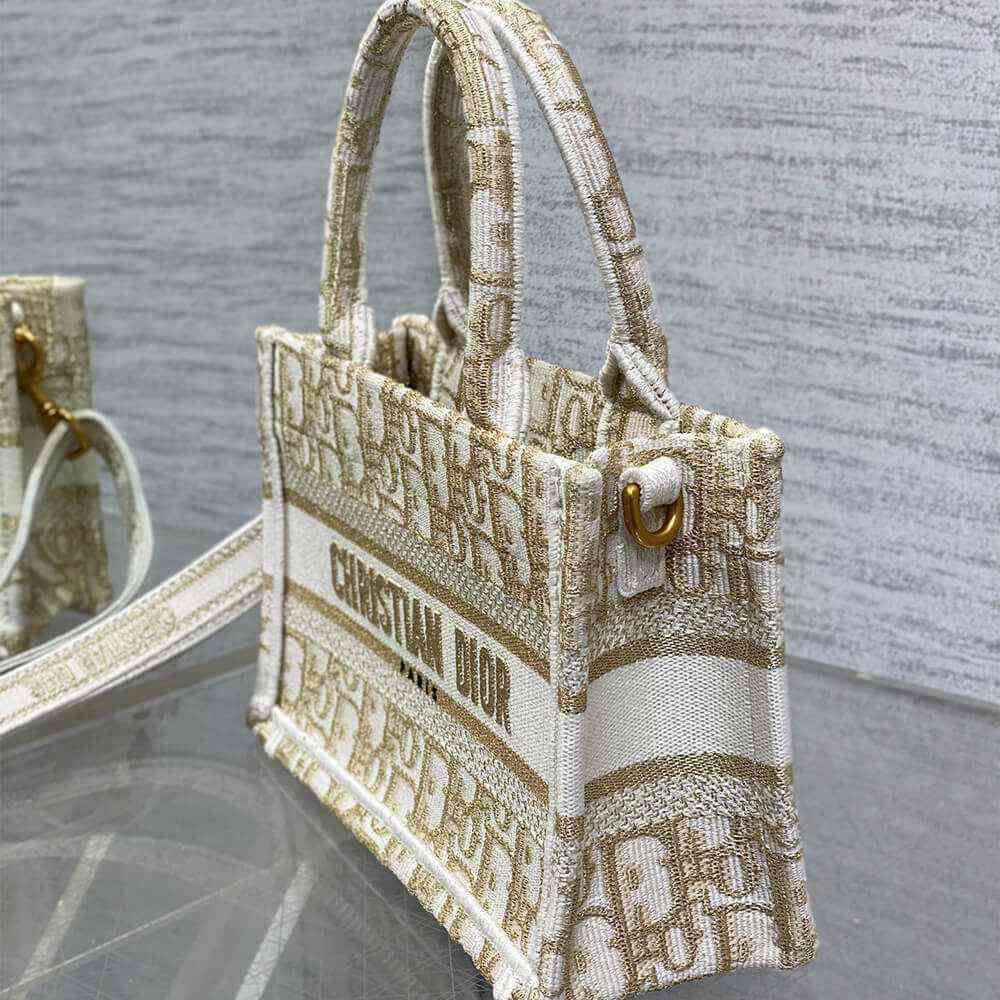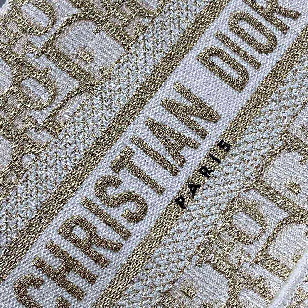 White and Gold-Tone Dior Oblique Embroidery