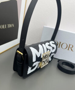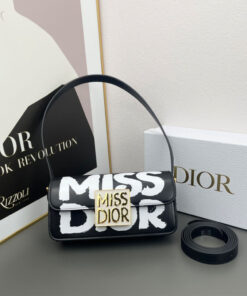 Black and White Miss Dior Graffiti Printed Calfskin
