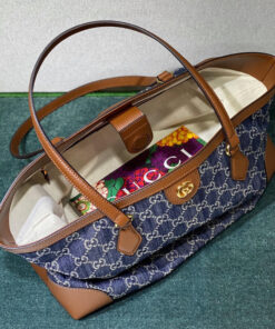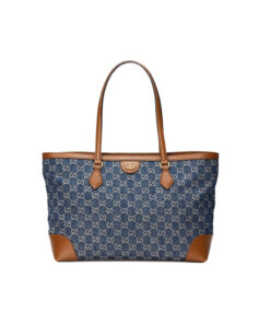Dark blue and ivory eco washed organic GG jacquard denim