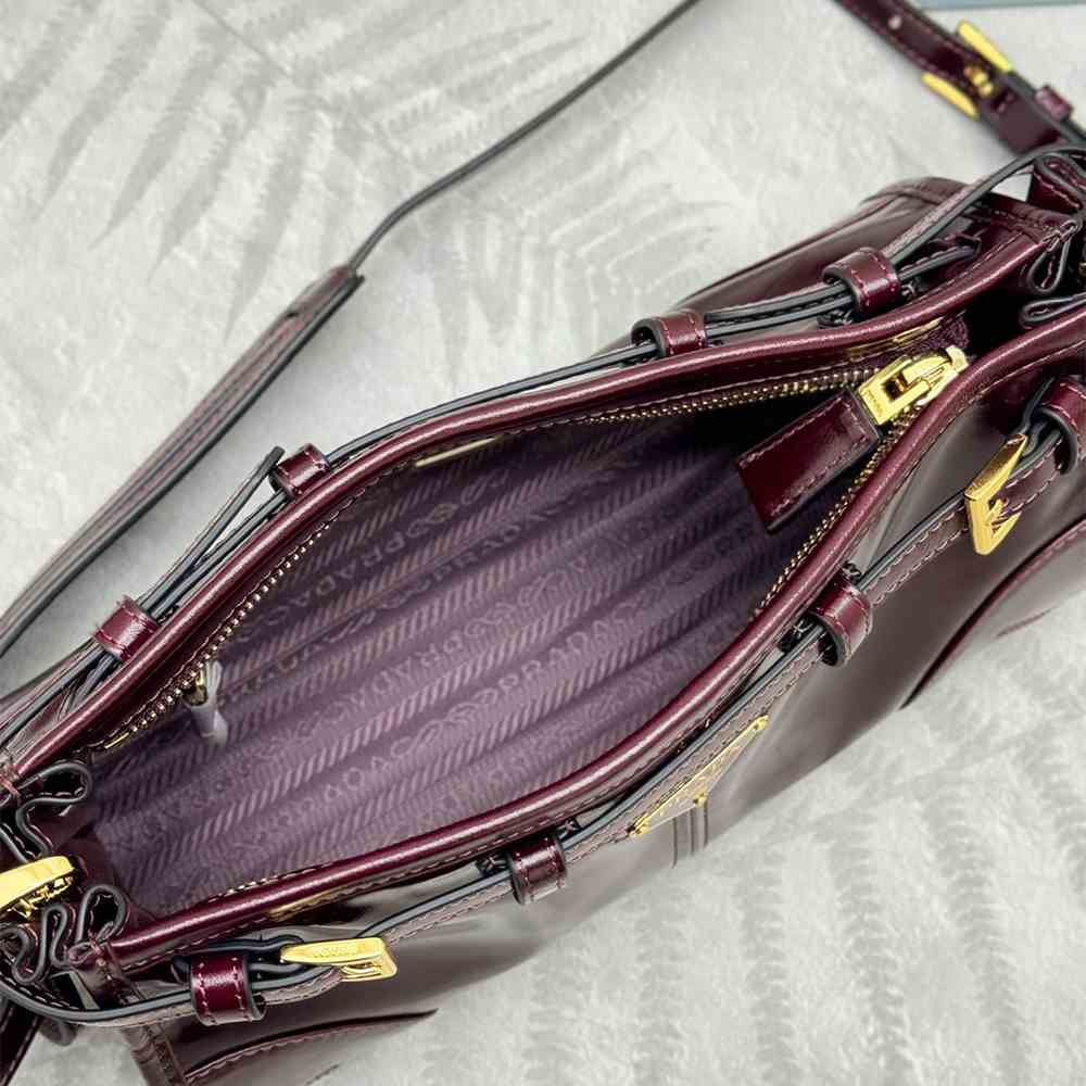 Nappa and logo-print nylon interior with center zipper pocket and patch pocket