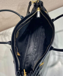 Nappa leather and logo-print nylon interior with center zipper pocket and zipper pocket